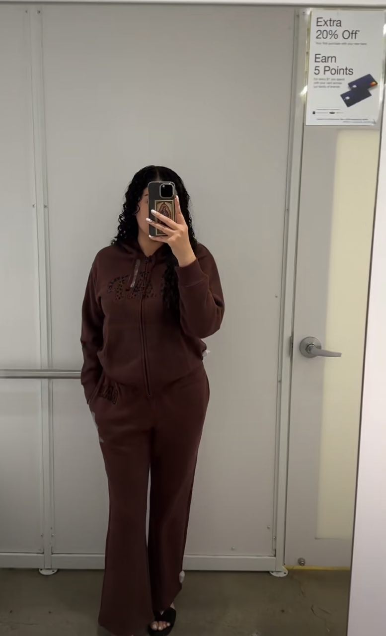 “Not gonna lie, I was skeptical about brown at first, but now I’m obsessed 🤎. The hoodie has that oversized cozy feel without looking sloppy, and the flared joggers are surprisingly flattering. I wore it out once and already had friends asking me to send them the link 👀. Definitely one of my best wardrobe buys this year.”