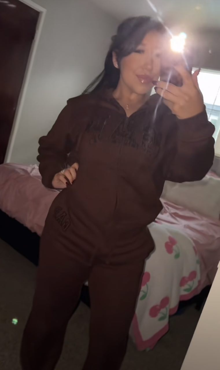 “I honestly didn’t expect to love this set as much as I do 🤎. The hoodie is so soft inside, it feels like I’m wrapped in a blanket, and the joggers fit perfectly without being too tight. I wore it out for coffee yesterday and two people literally asked me where I got it. It’s giving comfy but still so put together ✨.”